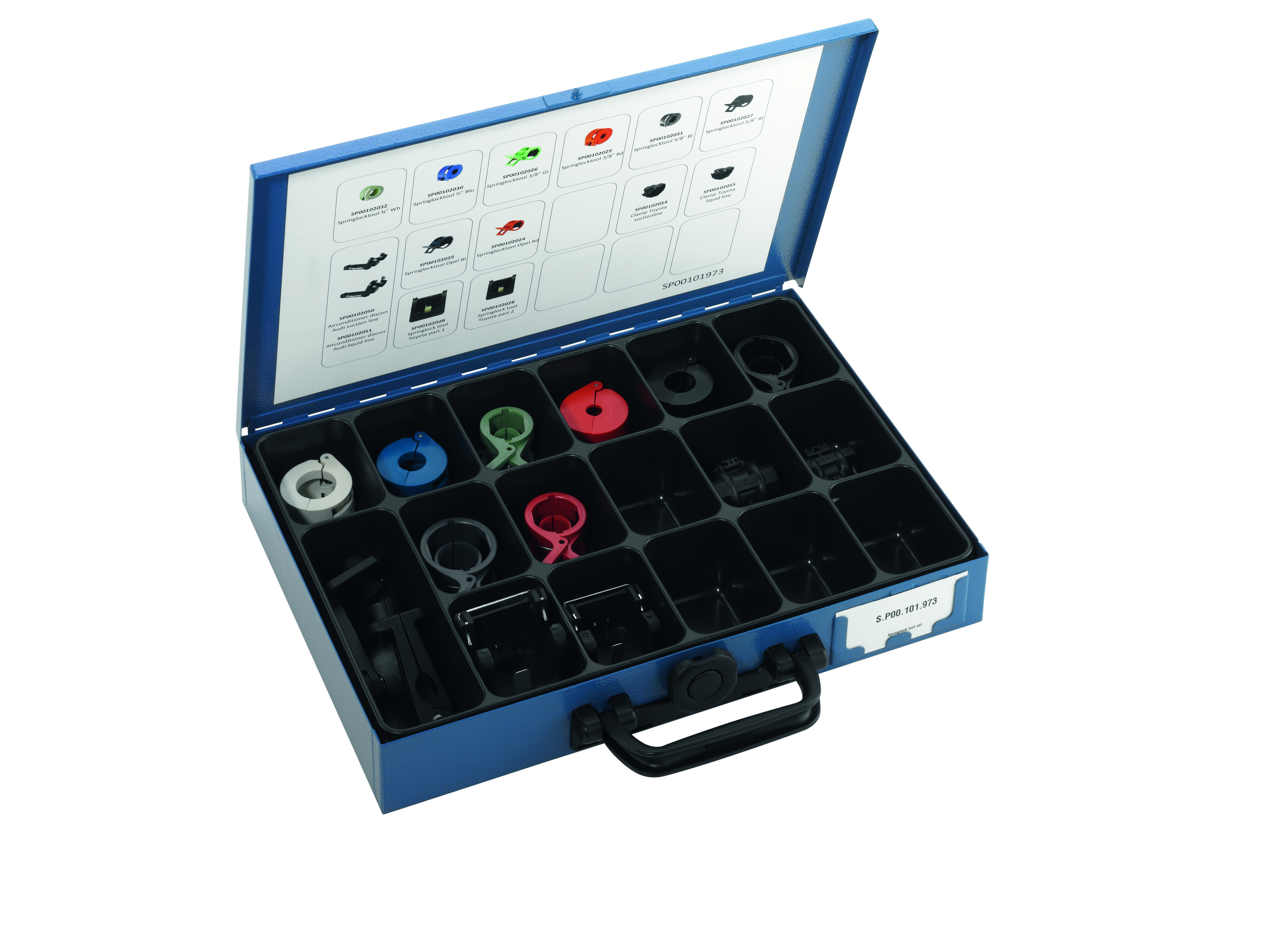 SP00101973 Spring-Lock Werkzeug Kit Spring-Lock Werkzeuge für Audi, Ford, Opel, Toyota, VWDer Satz enthält 13 Stück der meistverwendeten Werkzeuge für die Federverriegelung bei Arbeiten an mehreren verschiedenen Fahrzeug-Klimaanlagenanschlüssen. Bilder: spring_lock_kit_87603.jpg Category: Zubehör